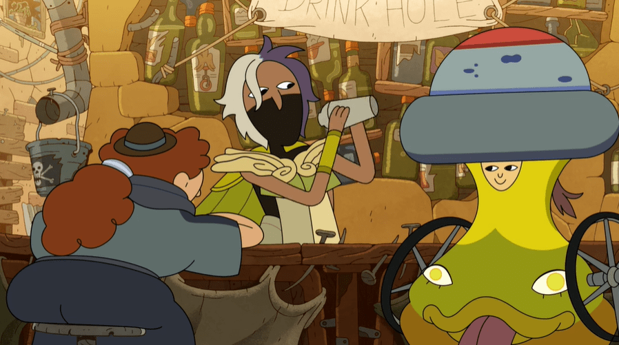 We also have Fionna’s side quests, which are mostly light and fun, with the added drama that she’s seeking out help from Abadeer to pay off the park’s debt. I’m reaaally not interested in having this story arc that is probably just going to result in everyone being kind of rightfully pissed off with Fionna for several episodes. I doubt they’re going to commit to it fully and I imagine there’s going to be a resolution with Fionna and her friends, so it just seems like a bit of added drama that doesn’t sound particularly fun to tackle. I do like Queenie so blatantly being petty – she’s a fun character.