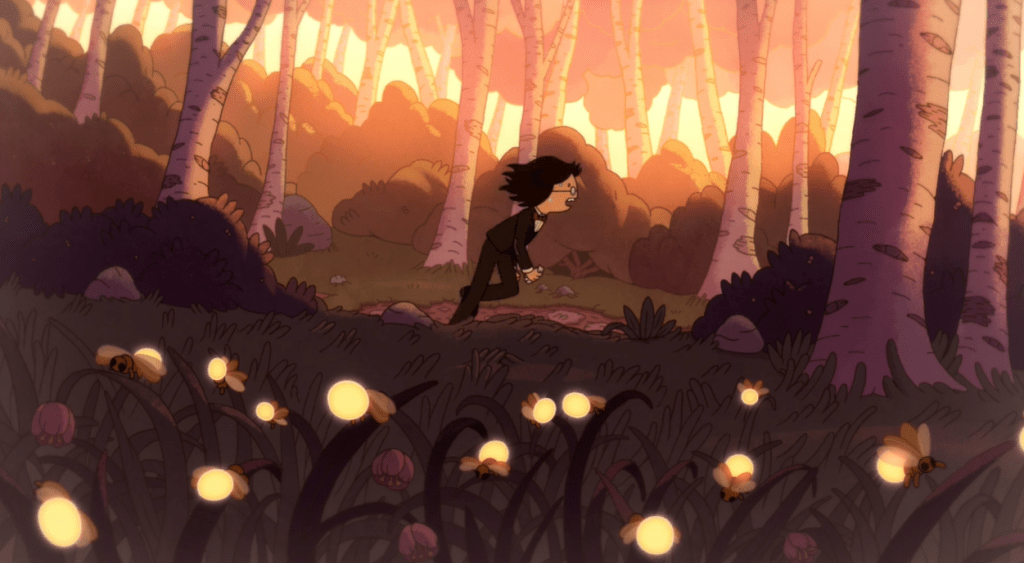 The rest of the episode is also pretty middling. I never expected the Marc Maron squirrel to appear again (I kinda just figured he’d be riding that frisbee through the air for all of eternity) but it was nice to see him once more. I think F&C, like Distant Lands, is still kind of struggling to capture the weirdness of the original series, and it’s probably most apparent here. The additional return of the Jim Cummings woodland critters feels like it’d be a prime opportunity for classic AT silliness to shine, but they mostly just show up, get fucked up by Cake (in one of the only instances from the season where I felt the use of blood was a bit gratuitous), and don’t really do anything funny. I’m always down for recapturing the light oddness of Adventure Time, though I feel like this is something the new team is struggling with the most. It’s not without moments that do feel spirituality-aligned; the Squirrel going on about how he involuntarily became an apple salesman one day was great and his boss being irrationally angry with everything she expresses was also fun.