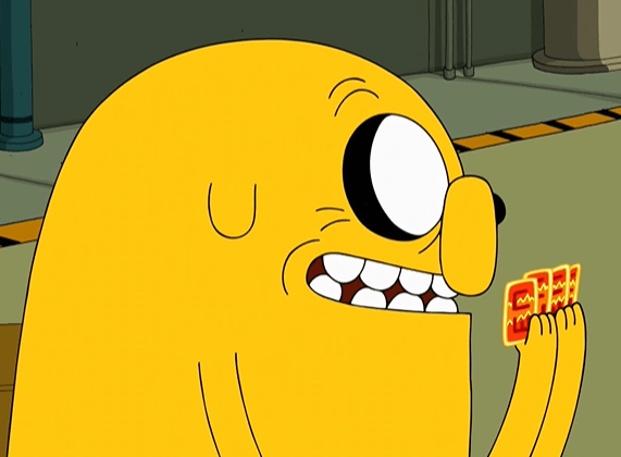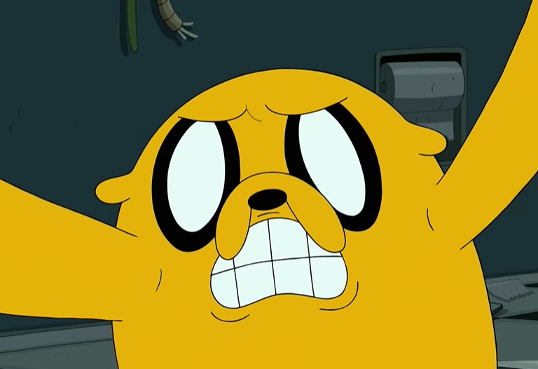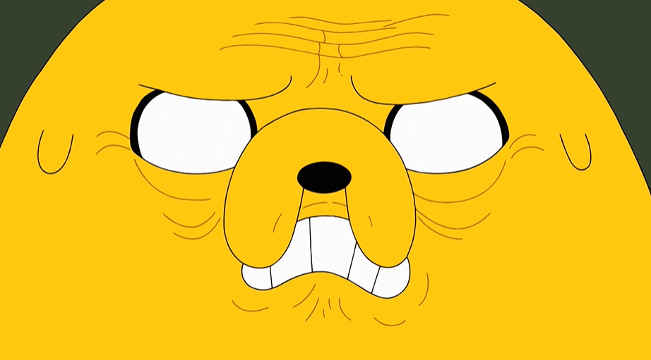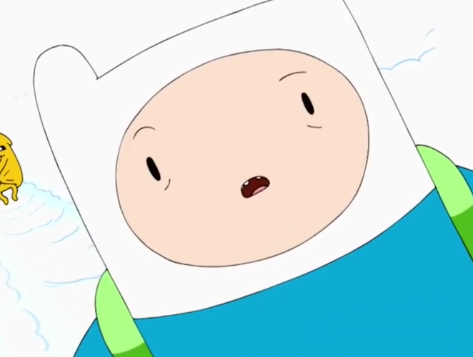 Before gettin’ into Cake stuff, there’s a brief little precursor to the episode I’ll tackle. We see Prismo once more, only this time he’s very clearly depressed. I really like all the small moments of Prismo mourning Jake’s loss – it’s all very understated moments of grief that really paint how much of an impact Jake had on Prismo’s life. And it’s even sadder to wonder just how long this has been going on, though it’s still unclear of when exactly Jake kicked the bucket. The clip of Finn and Jake at the Bird Temple has questionable implications, namely that Finn got the tattoo of his brother before he died. I think that idea is pretty dumb, so my current headcanon is that this must be an alternate universe where Jake survives, but Finn ends up getting the tattoo anyway. I’ve seen the idea thrown around that the tattoo could’ve been the result of Finn losing a bet to Jake, which I think is relatively unsentimental, but I could get behind it if only Finn was super happy about losing said bet. Like, he doesn’t even care, because he’s like, “hey, I get to have my favorite person on my chest forever!” I think that would be pretty sweet. The little sequence itself of their adventure feels similar to the pretty surface-level quest we see at the beginning of Together Again, though it has some neat little additions. I like how the temple itself seems to be partially based on Ghostshrimp’s design for a Bird Temple from the scrapped season one episode The Helmet of Thorogon and the cockatykes on copter-trikes does feel like a very AT-specific concept. Seeing Jakesuit again is also fun, though I feel like it’s reaching the point of oversaturation after appearing pretty recently in Together Again. You can’t just throw the Jakesuit around willy-nilly, it’s for special occasions!