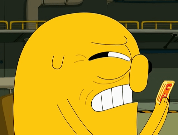 As for the rest of the episode, there’s a few more moments sprinkled in that I like. Fionna’s interactions with Marshall and Gary are fun – I love her reaction to seeing them hook up, as well as their collective reactions to hating each other in a parallel universe. Seeing genderbent (is this still an acceptable term? It feels somewhat outdated but I have no idea what the general public’s opinion on it is. Or just nerd culture. I’ve never actually heard someone use the phrase ‘genderbent’ in the real world) Tiffany was additionally fun, and I loved Cake morphing into Fionna’s fit of the day. The brief reference to Cheers (the series) was super funny as well – love Norm Peterson’s iconic catchphrase “I’m walkin’ here.” But yeah, pretty much already talked about all the stuff I was actually interested in. A lot of the pacing for Casper & Nova suffers from the same reasons that Cake the Cat did; most of the episode kind of meanders in the F&C world, feeling like their scenes are mostly just there to slowly carry out the story elements that bleed into the next episode. This is complemented by the “track down and capture the mini-Scarab” segments, which feel equally unengaging. The nightmare sequence at the beginning is fine. I like Simon’s contorted body in the fridge towards the end, but AT has had many, many dream sequences up to this point, most that are far more well-executed.