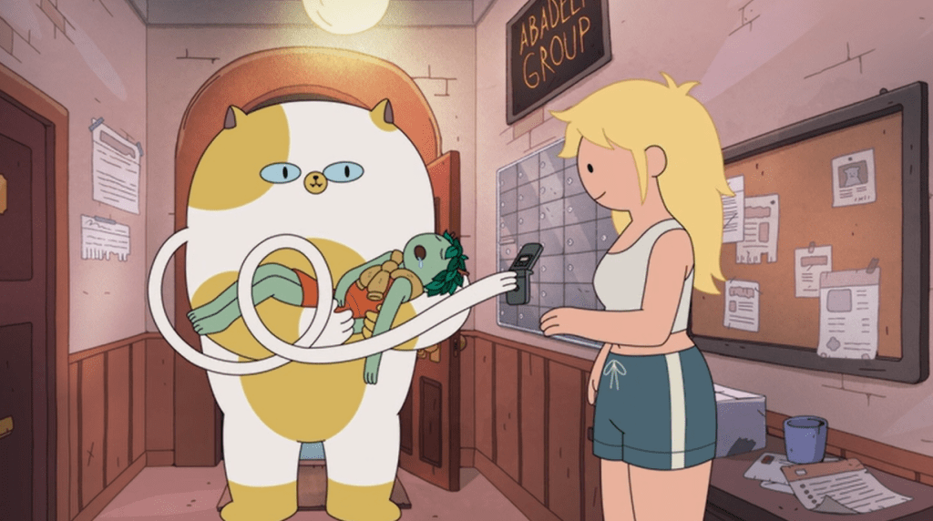 We also get a ton of Huntress Wizard on the side, which mostly accumulates into a battle sequence between her and Witch Wizard. I don’t know if I really like that Witch Wizard ended up being the big bad of this season, even though I don’t think it really comes out of nowhere, given her role in The Crocodile Who Bit a Log. I think I just did admire the season up to this point for not having any kind of direct antagonist, with time and internal struggles playing the forefront. I don’t think it’s really a huge detractor, and I do like the way their back-and-forth bleeds back into the episode. Witch Wizard struggles to actually transform in a meaningful way (literally) because of how much she’s taken, and her own karma will not allow her evolve as a result. Huntress Wizard is able to reform because she’s connected with her own truth, in a way that I additionally don’t think has been particularly explicit throughout the season’s run. I was bitchy last episode about how little HW has been at the forefront of this season, and I think that stills stands, but I wanna go back to what I said in The Wolves Who Wandered and commend this team for not going the obvious route with exploring Huntress Wizard’s character. I think from the first episode we sort of know what she has to learn already – that she’s mostly closed off and she needs to find a way to connect more with the world around her. The season has mostly steered away from reinstating this, outside of it being a bit overtly alluded to in The Bird in the Clock. I think this episode kind of solidifies the idea that Huntress herself is not necessarily someone that needs to be fixed, nor is Fionna, for that matter. She’s had the opportunity to look over her circumstances over the course of the season and realize that her own form is malleable, and that her role in this world doesn’t have to be so static. Granted, change is only ever so slight. She’s not necessarily a different person from what we see in this episode. She helps the little plant boy recover and then promptly shoos him off before he gets attached. I think a lesser version of this episode would’ve expanded upon the relationship between these two as a clear point of Huntress’s growth, but I think it’s a cool addition into the “everything stays, but it still changes” motif that AT has carried out since the very beginning. Huntress Wizard isn’t some radically different being who is now open to everything life has to offer, but she’s seen the truth of herself and is able to adjust accordingly, for the good of her and everyone in her life. This revelation is additionally referenced in her response to Witch Wizard later in the episode: “You’ll learn to be somebody again.” Even in nothingness, there’s an opening to pave your way into somethingness.