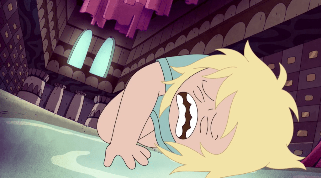 It additionally doesn’t help that Fionna’s connection with Phelix finally comes to a breaking point where the two share a kiss directly in front of Fennel. Once again, I’ve come to the defense of this storyline throughout the season because it felt more like an internal struggle for Fionna and less like it would play out in the traditional teenage romance drama. But nah, here it is pretty much just the latter. It’s funny how much the season has been playing around with mocking sitcoms and trashy 90s shows while pretty much playing into those tropes and storylines without any degree of irony. We’ve gotten about a dozen dunks at Cheers, but is this really writing that feels above that territory at times? I also really can’t stand Phelix at this point, he’s such a nothing burger of a character. We barely see anything from his perspective so I cannot get any kind of indication of who he is supposed to be besides the fact that he’s kind of an airhead. This series seems so against villainizing any of the human characters in any degree, but in doing so, it makes nothing about Phelix feel consistent. I guess he’s emotionally immature? Or a fuckboy? But the show simultaneously wants you to like him and find him charming? It’s such a poor character journey, and I’ve purposefully kept my mouth shut about it in hopes that it wouldn’t boil over into such trashy fodder. But here we are. I will give kudos that I like the continued bit of trauma Fionna experiences when getting close to anyone as a result of her experience with the Winter King last season.
