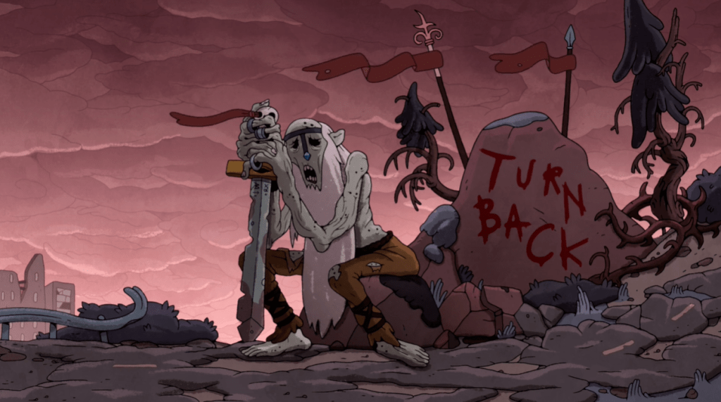 Simon opening his call to Fionna with “hey, girl!” was irresistibly sweet. It really is a testament to the previous season’s strength that he has become such a beloved presence in the series, after mainly being a gimmick for storytelling purposes in the original series. His awkwardness around PB is additionally hilarious, because I totally think he’s overthinking the kidnapping element and I think PB struggling with her own demeanor is just kind of how she is. Though, I also wouldn’t be shocked if she’s still petty over being called an assistant way back in Broke His Crown. Simon in general seems a lot more well-adjusted after the events of last season than Fionna does, which I’d imagine is a direct result of having several stand-in daughter figures and an outlet for his interest in magic. I was totally prepared for the scene with Simon at the solo tombstone to be heartbreaking, but having it be Choose Goose probably provided the biggest laugh of the episode for me. Not only does this sudden obsession with him since Distant Lands continue onward, but I’ll additionally never understand the absolute vitriol for him that the staff feels. He somewhat unknowingly became possessed after the events of Wizard City, was used and tortured by Simon in the first season, and now is dead with a tasteless rhyme on his graveyard, seemingly rotting in Hell as seen in Together Again. It’s kind of hilarious.