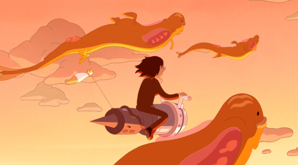 New intro this season! I like it, for the most part. As always, it’s great to see the SmallBu team back at it again with very bouncy, vibrant animation. The anime allusions feel slightly jarring, but its an aesthetic that F&C have played around with since their introduction into the original series. The intro additionally doesn’t really feel like Adventure Time – the music and the lack of an introductory long pan feel like a deliberate stray from what we’re accustomed to seeing. I’m kind of all for Fionna & Cake branching out and adopting its own style this way. After 10+ years of alternative intros that have used the original title sequence as a reference point, it’s refreshing to get something quite different in taste. Although, I will say, I liked the music that accompanied last season’s intro far better. I don’t think it’s a very compelling beat and I don’t think it really aids the visuals that successfully either. I almost wish they repurposed the initial score and made new visuals to go around it – but I guess in true anime style, they wanted to start this one from the ground up. Apparently, a good bit of the intro is referencing Revolutionary Girl Utena, an anime I’ve never seen but I am interested in checking it out. I’ll reserve comments about the little bits of foreshadowing for character arcs and relationships sprinkled in until they actually come into fruition within the season.