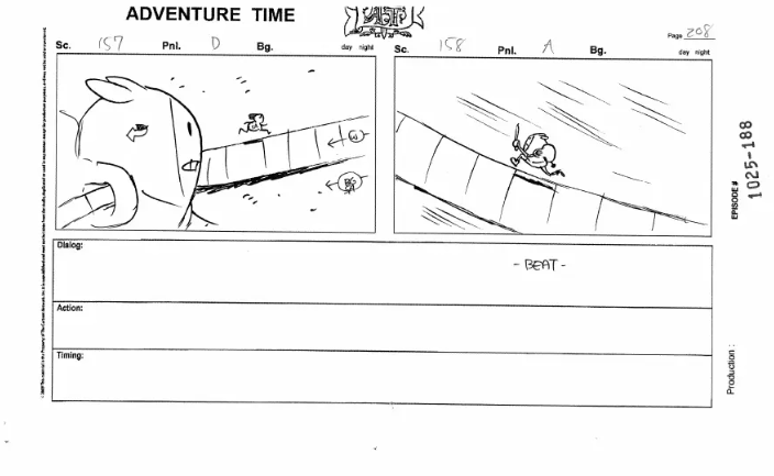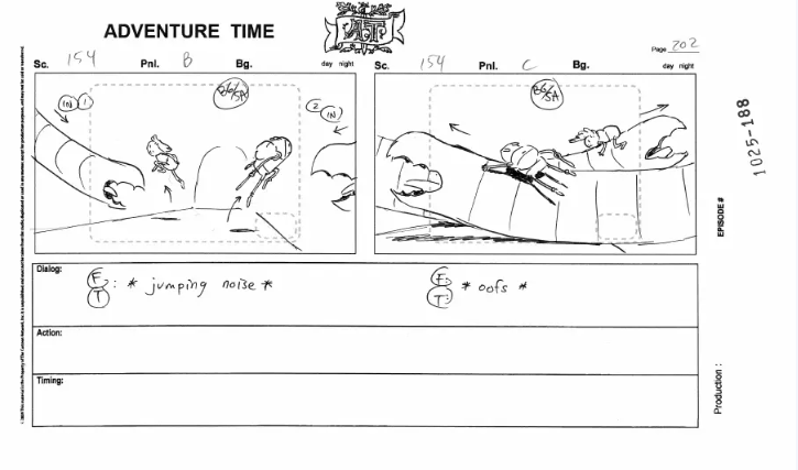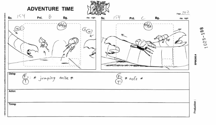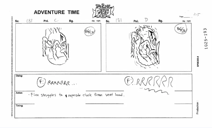 Herpich attention to detail really permeates through his boards, and he’s conjured up some of the most fluid action sequences in the series. The above is from Dentist – a lot of malleability with the characters as well. I love the realistic physics of Finn’s hat moving – something mostly unique to Herpich.