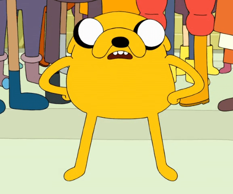Moynihan Jakes usually possess the same simplistic, raised eyebrows that his Finn’s have, as seen in images one, three, five, and eight. Perhaps most distinctive are eyes Moynihan draws for Jake, which will slant in the same sideways motion as Finn’s, with the whites receding into the black, as noted in images five, seven, and nine. In fact, the black in Jake’s eyes often swallows up the white pupils, making them much smaller than most board artists – seen in most images but primarily in one, four, six, and eight. Jake’s eye sockets will additionally often bulge off the side of his head, noted in the first two images. And, in typical Moynihan fashion, Jake’s shoulders are much more prominent. Seen in images one, three and four. A Moynihan Jake ear will often curl off the side of his head, but often not as dramatically as a Muto or Nyström ear.