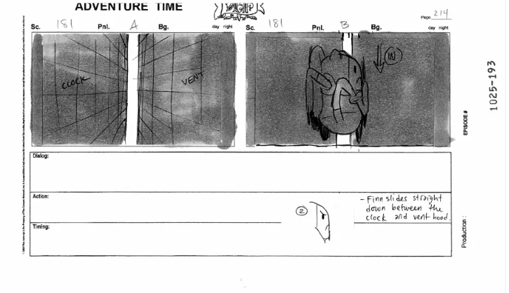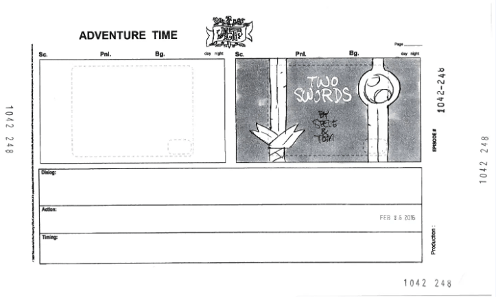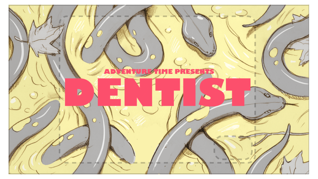 Herpich is also unique in that he’ll create rough sketches for title cards within the storyboards, something that is not required of him, but he’ll add anyway. Most of these don’t end up being used for the final designs; they all commonly feature characters facing toward the screen.