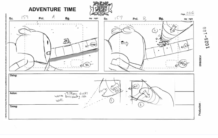 Another high-stakes sequence from Walnuts & Rain. Really elaborate shots and camera movements for a storyboard as well – AT really utilized storyboarding as an effective method of directing more so than most animated shows in the industry.