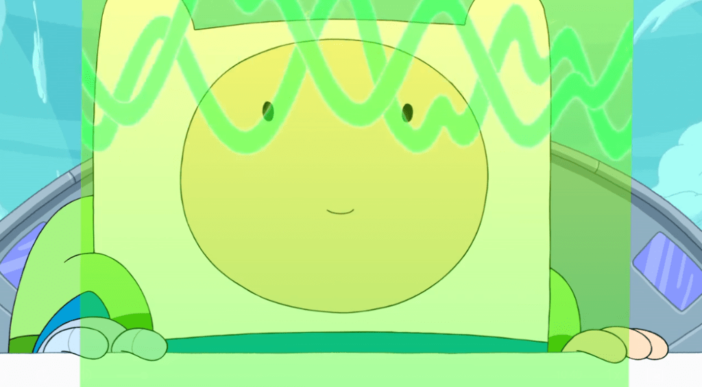 Honestly, similar to BMO, I’m always surprised at how much I’m delighted by a Lich appearance. Like, by the time Whispers aired, I was pretty tired of his character because his appearances no longer felt very “weighty” to me. He started out being the most intimidating baddie in any animated series, but by the end of it, he was feeling more and more like a glorified villain of the week. This was the same with Together Again, where most of the horror was shed, but Ron Perlman’s delivery, the dialogue they gave him, and the way it worked as kind of a bookend for Finn and Jake’s journey as a whole roped me in. Now with Jerry and the way he actually somewhat develops in the next episode, I think I’m back on the Lich train fully. Granted, I still think he should probably be retired from this point onward, but this is the first time in years I actually feel like we’re learning something about the character. Whispers more so utilized his presence to build on Sweet P’s character, while Together Again simply features him as a final boss of the sorts. Jerry shows the Lich in a bit of a different light, as he has lost the drive in his goal to end all life, seemingly succeeding in his efforts for the most part. It’s pretty similar to the state we saw him in throughout Wake Up, where he operates with no purpose when he cannot carry out his primary function. Here, however, it seems like it’s more of an active choice on his part? It’s kind of easy to forget that the Lich’s autopilot isn’t just to destroy everything in his path – his titular episode back in season four had him scheming and manipulating to carry out his duties, which implies that there is some level of conscious decision making on his part. I didn’t really ever need the Lich to be fleshed out, because part of what makes him cool is that he’s shrouded in such quiet terror. But the added mysticism of his role in the universe does help to continue to expand the world of Adventure Time beyond its humble roots. And how cool is it that this is the wish world that was created in Finn the Human?? I love how nuanced that detail is, in a way that I didn’t even realize it on my first watch (though the whole “wearing Billy’s dead skin” thing should’ve been a dead giveaway). Also, I absolutely adore the fact that BMO has clearly been braiding Lich Billy’s beard, because it wasn’t like that the last time we saw him in this condition. So cute… I think?