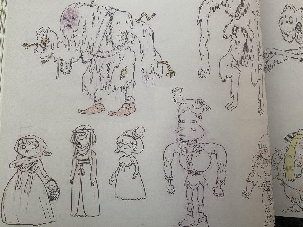 That love for detail really comes out in his character design work. Herpich started out as a character designer and would originally make designs overly complex in a way that didn’t really translate to the mostly simplistic style of the series. In an interview from the Art of Ooo book, in reference to Mannish Man’s initial designs, Herpich states, “I didn’t realize at the time that all this stuff was impossibly complicated, plus strayed so far from the original storyboard drawings that it would’ve all had to be reboarded to use these designs.” It’s interesting to see how the series shaped Herpich’s artwork while also seeing how his style has influenced the designs of monsters and magical entities.